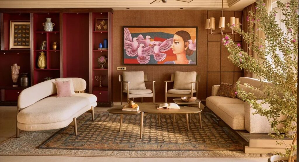 Artistic wall painting is perfect for homeowners who want a unique and personalized living room. Instead of simple colors or patterns, the wall becomes a piece of art.